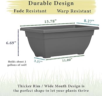 Amazon Com Backyardbounty Rectangle Planter Box 16 Inch Indoor Outdoor Rectangular Planter Durable Uv Resistant 2 Gallon Plastic Window Box Trough Use For Herbs Succulents Vegetables Graphite Grey Patio Lawn Garden